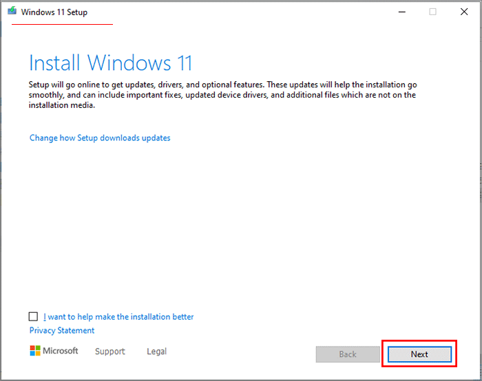 Krok 4:Postępuj zgodnie z instrukcjami kreatora instalacji systemu Windows 11, aby zainstalować system Windows 11.