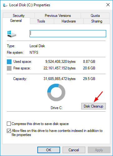 Metoda 5: Otwórz Oczyszczanie dysku w systemie Windows 10 we właściwościach dysku