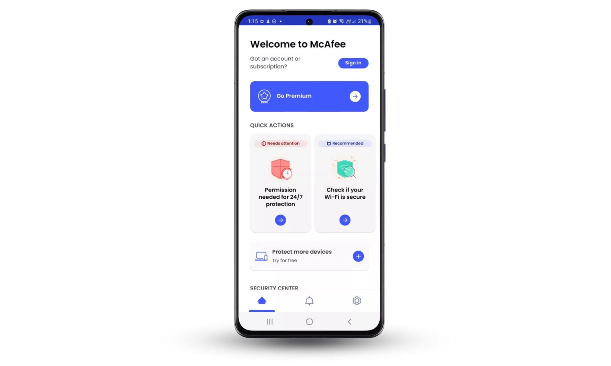 Bezpieczeństwo McAfee jest dostępne w bezpłatnej wersji próbnej, ale wersja Premium (kompatybilna zarówno z telefonami z Androidem, jak i iOS) zaczyna się od 13,99 USD miesięcznie lub 139,95 USD rocznie.