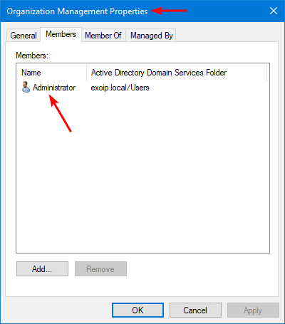 5.Upewnij się, że administrator jest dodany doZarządzanie organizacjągrupa.