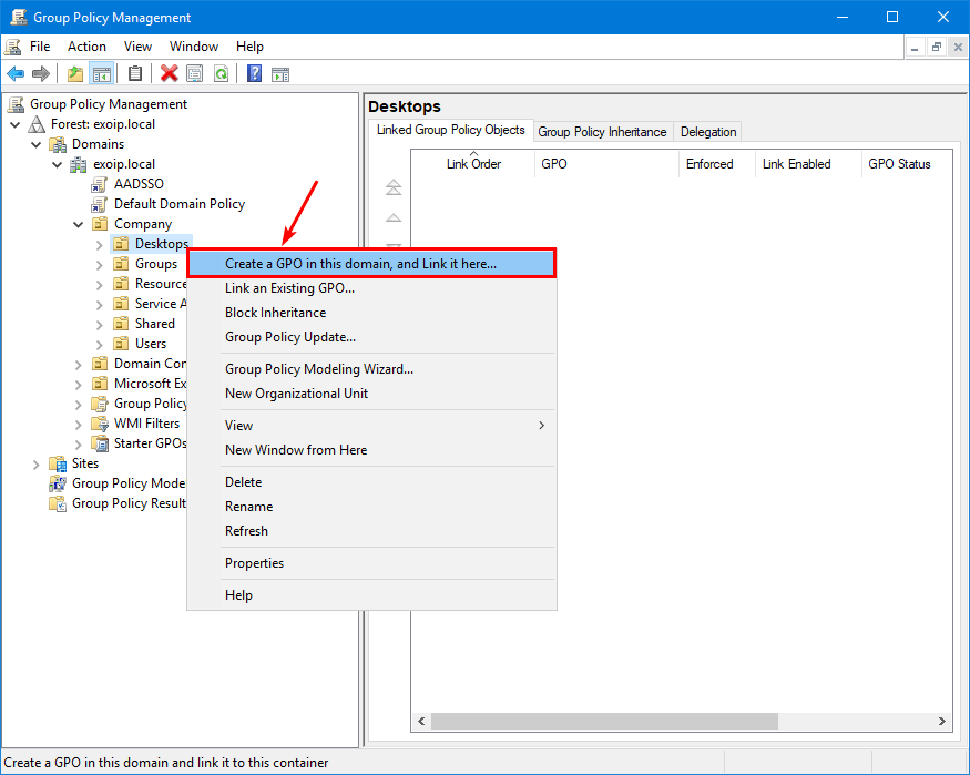 3.TrzaskUtwórz obiekt GPO w tej domenie i połącz go tutaj.