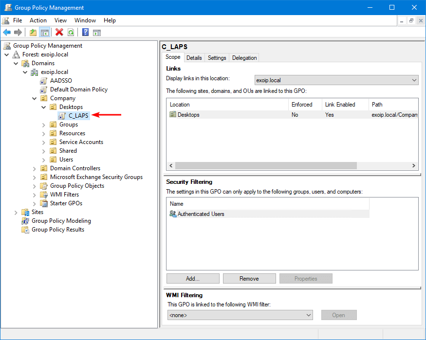 Set-LapsADComputerSelfPermission -Identity "OU=Company,DC=exoip,DC=local"5. Skonfiguruj obiekt GPO LAPS