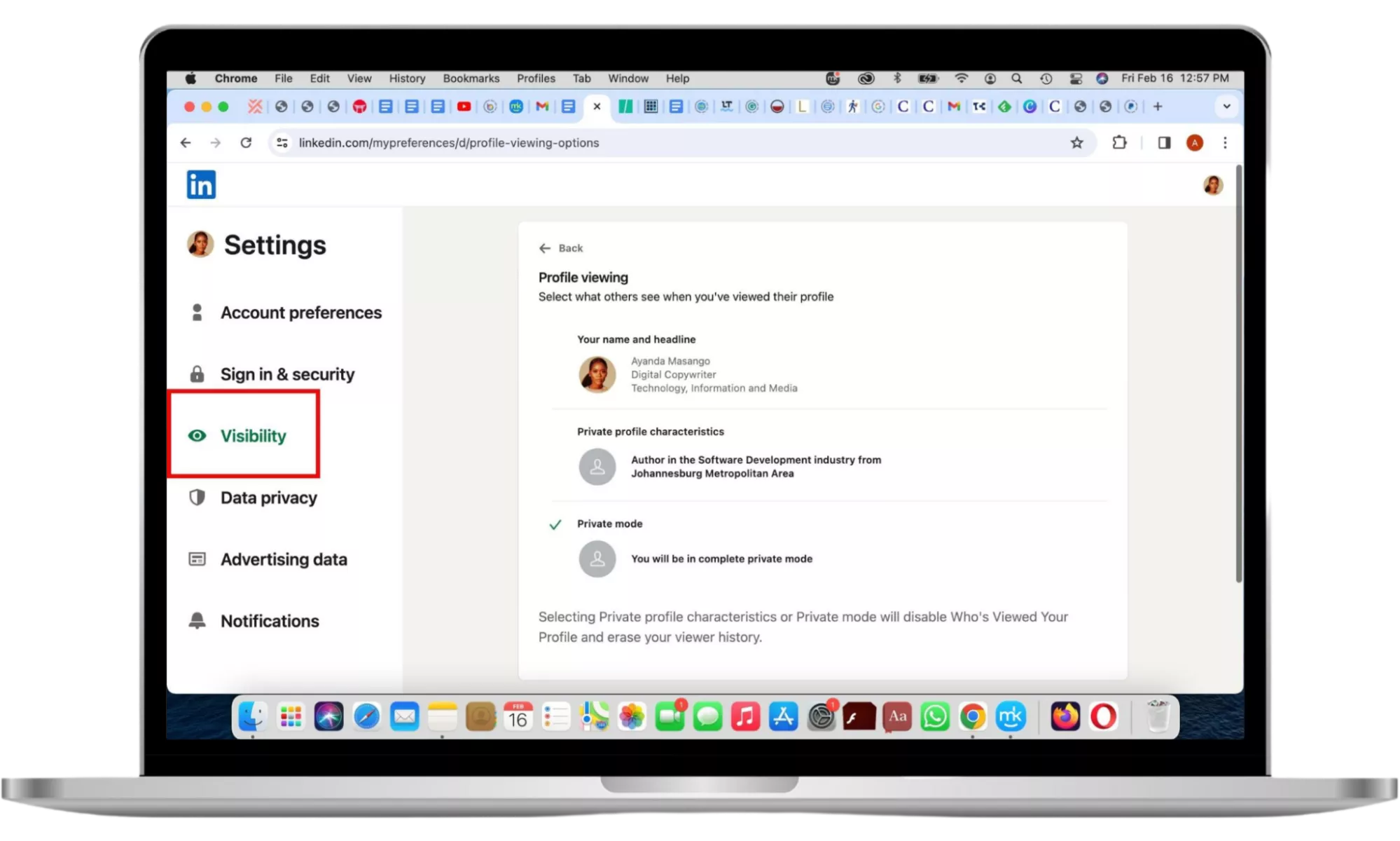- Przejdź na prywatny profil LinkedIn.Chociaż Twój były może nadal znaleźć Twój profil, informacje, które zobaczy, będą ograniczone. Zarządzanie ustawieniami prywatności i widoczności na LinkedIn pozwala dostosować, jakie informacje mogą widzieć inne osoby, takie jak Twoje kontakty, obserwujący, status aktywności i inne.