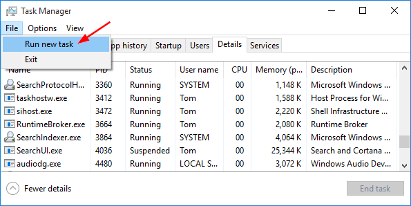 - KliknijPlikmenu i wybierzUruchom nowe zadanie.