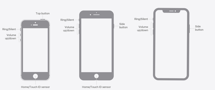 Krok 1:Zainstaluj i uruchom aplikację iTunes lub Apple Devices na swoim komputerze. Upewnij się, że wersja aplikacji jest najnowsza, aby proces przebiegał sprawnie. Po zakończeniu chwyć zablokowanego iPhone'a i przełącz go w tryb odzyskiwania, korzystając z jednego z poniższych przewodników, który pasuje do Twojego modelu iPhone'a: