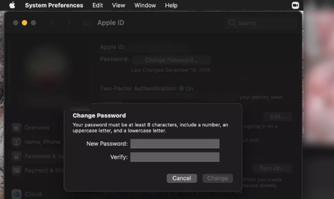 Jeśli pamiętasz swoje oryginalne hasło Apple ID i chcesz ustawić nowe, możesz zaktualizować swoje hasło na zaufanym urządzeniu (poniżej znajduje się przykład na komputerze Mac).