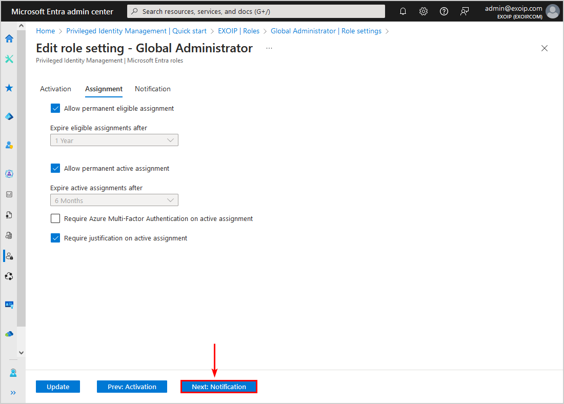 - Wymagaj zatwierdzenia, aby aktywować role uprzywilejowane