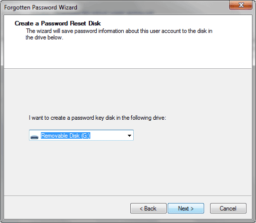 Spowoduje to uruchomienie Kreatora zapomnianego hasła. Teraz na tym etapie musisz upewnić się, że masz dostępny dysk flash USB lub dyskietkę. (Pusta płyta CD lub DVD najwyraźniej nie będzie działać)