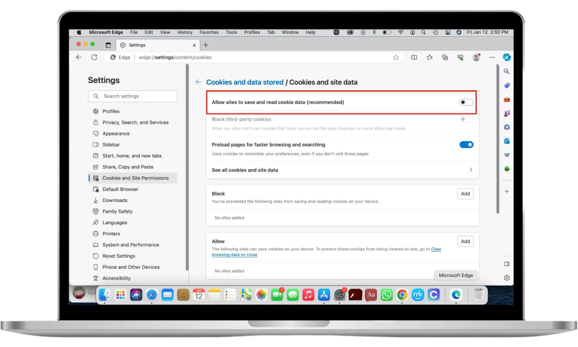 Jak wyłączyć pliki cookie w Microsoft Edge na macOS