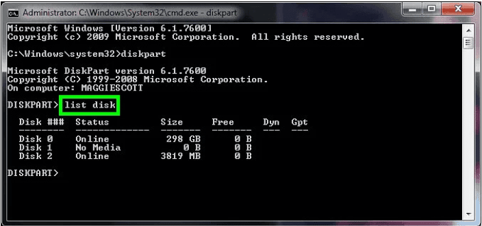Rozwiązanie 4: Wyczyść kartę SD za pomocą Diskpart