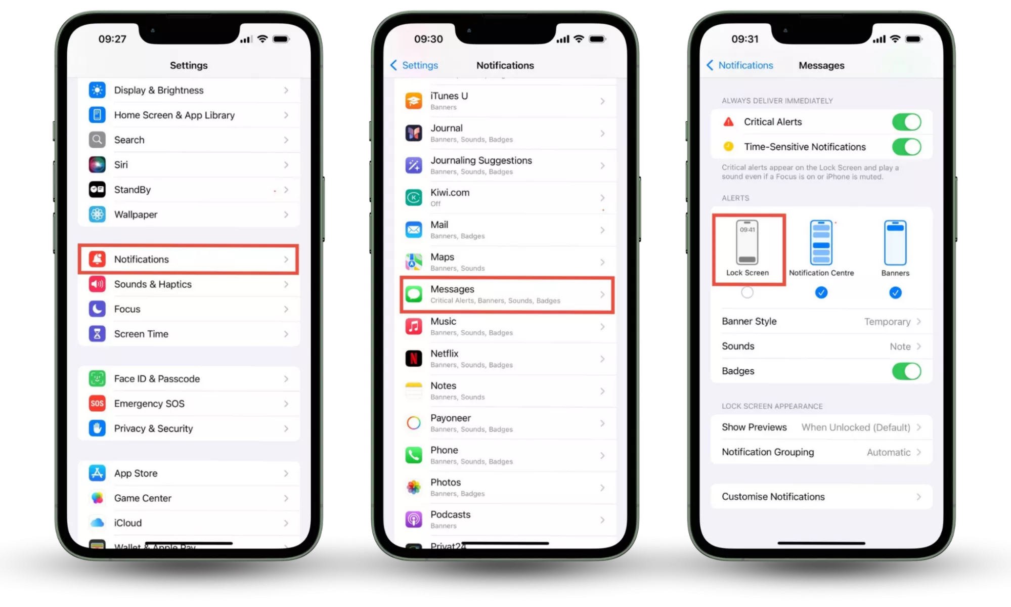Krok 1-5. Ustawienia > Powiadomienia > Wiadomości > Ekran blokady.To wszystko! W kilku krokach możesz przejąć kontrolę nad tym, co pojawia się na ekranie blokady, zachowując jednocześnie potrzebne powiadomienia.