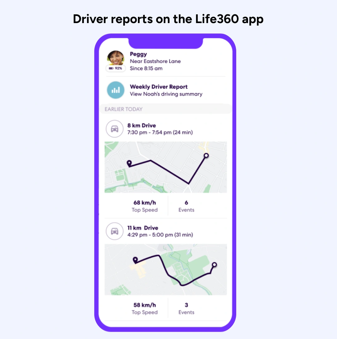 Rodzinom z młodymi kierowcami funkcja ta udostępnia szczegółowe informacje na temat zachowań kierowcy, np. przyspieszania lub korzystania z telefonu w drodze.