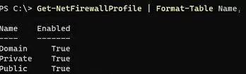 Get-NetFirewallProfile | Format-Table Name, Enabled