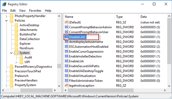 HKEY_LOCAL_MACHINESOFTWAREMicrosoftWindowsCurrentVersionPoliciesSystem