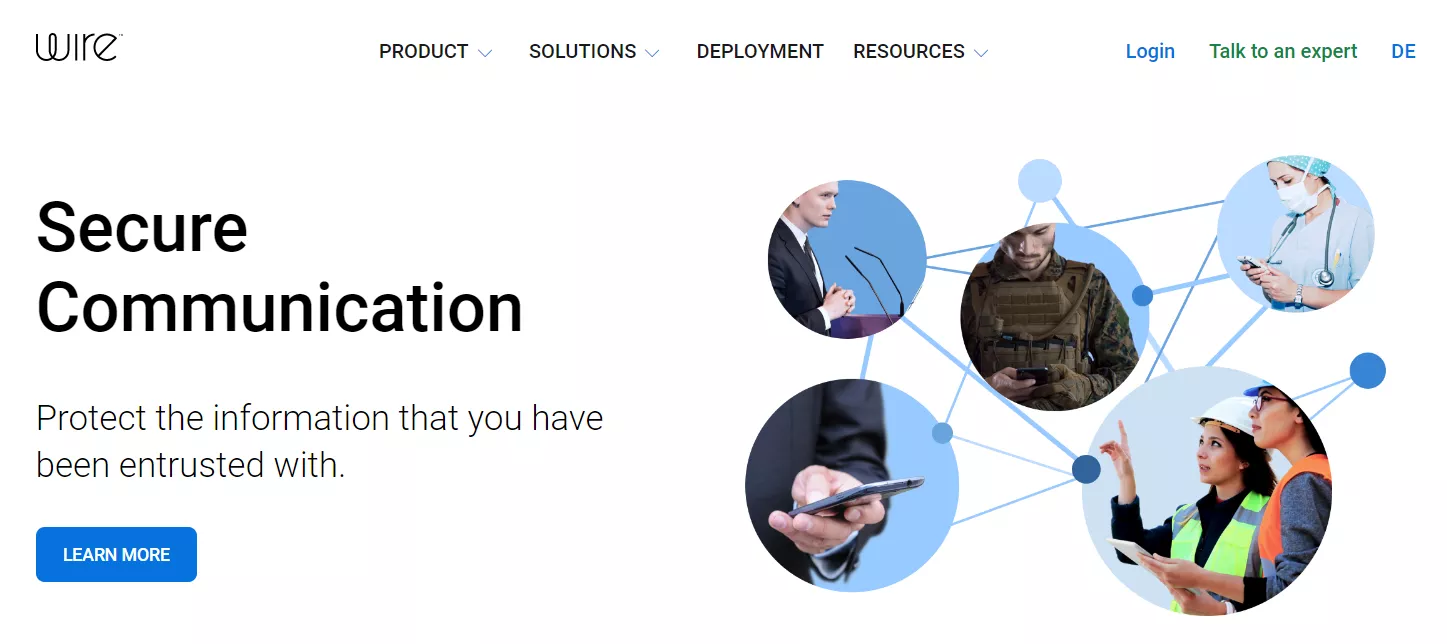 Wire to bezpieczna aplikacja do przesyłania wiadomości przeznaczona głównie dla agencji rządowych i przedsiębiorstw. Organizacje o krytycznym znaczeniu dla bezpieczeństwa na całym świecie ufają firmie Wire ze względu na jej możliwości bezpiecznego udostępniania informacji.
