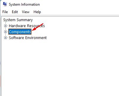 2. W oknie Informacje o systemie rozwińKomponentysekcja.