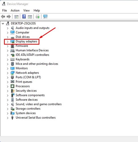3. Spowoduje to rozwinięcie menu Adaptery graficzne i wyświetleniekarta graficzna używana w Twoim urządzeniu.