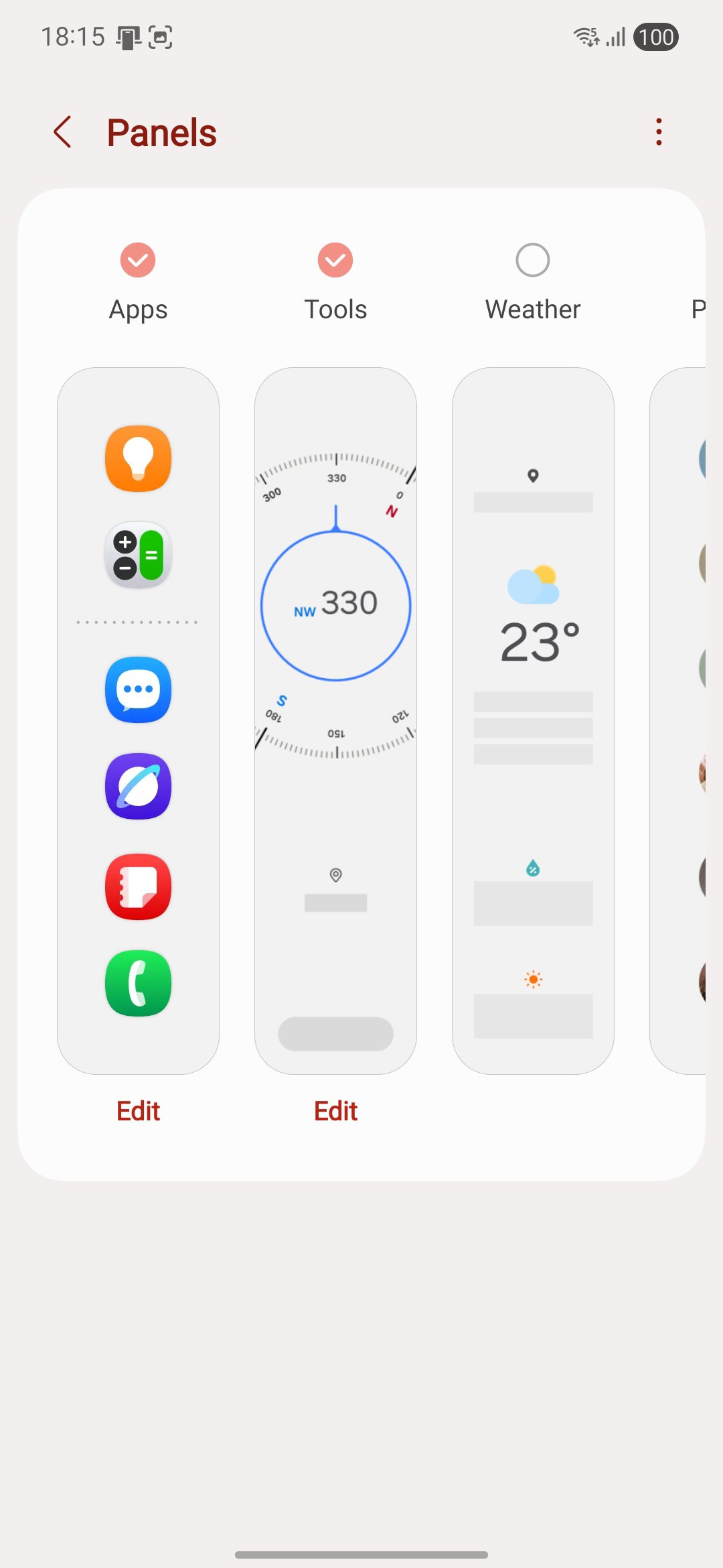 Panel krawędziowy to funkcja, którą można kochać lub nienawidzić i bardzo mi się podoba. Mały uchwyt z boku ekranu umożliwia wyciągnięcie różnych paneli, takich jak strona z ulubionymi aplikacjami, szybkie narzędzia, takie jak kompas lub licznik, prognoza pogody i inne. Panele aplikacji i narzędzi to te, których używam najczęściej i to jedna z rzeczy, która sprawia, że wielozadaniowość w One UI jest o wiele lepsza.
