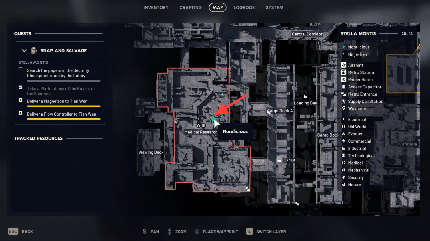 Przejdź do strefy badań medycznych w Stella Montis. Jest wypełniony epickimi kontenerami i miejscami odradzania się łupów.