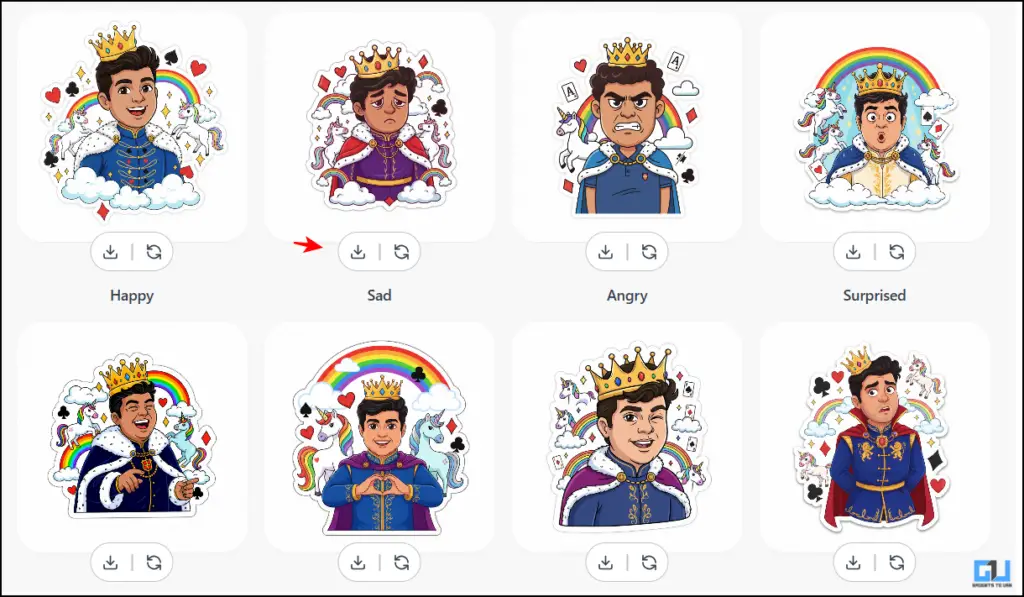 5.Ostateczne naklejki można pobrać pojedynczo lub w pliku ZIP, wystarczy kliknąć Pobierz wszystko, aby uzyskać plik ZIP.