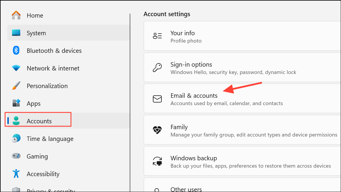 Krok 2:Odłącz konto służbowe lub szkolne od systemu Windows. OtwarteUstawienia > Konta > E-mail i konta, znajdź swoje konto organizacji i wybierzUsunąć.