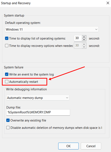 5. Następnie usuń zaznaczenie pola znajdującego się przedAutomatycznie uruchom ponowniei uderzyłOkprzycisk.