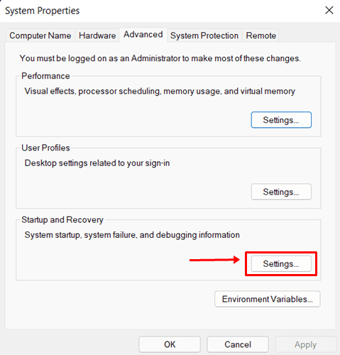 4. Teraz zlokalizuj i kliknijUstawieniaopcja podSekcja Uruchamianie i odzyskiwanie.