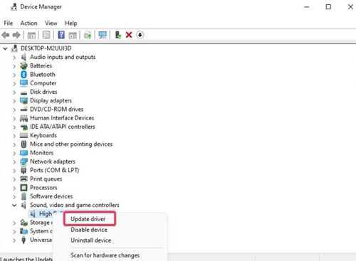 3. Teraz kliknij prawym przyciskiem myszy sterownik karty graficznej i wybierzZaktualizuj sterownik.