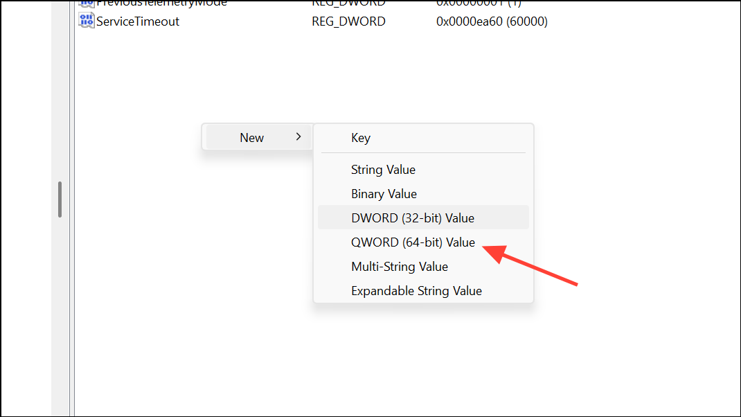 Krok 3:Kliknij prawym przyciskiem myszy w prawym okienku i wybierzNowy > Wartość DWORD (32-bitowa).i nadaj mu nazwęDisabled.