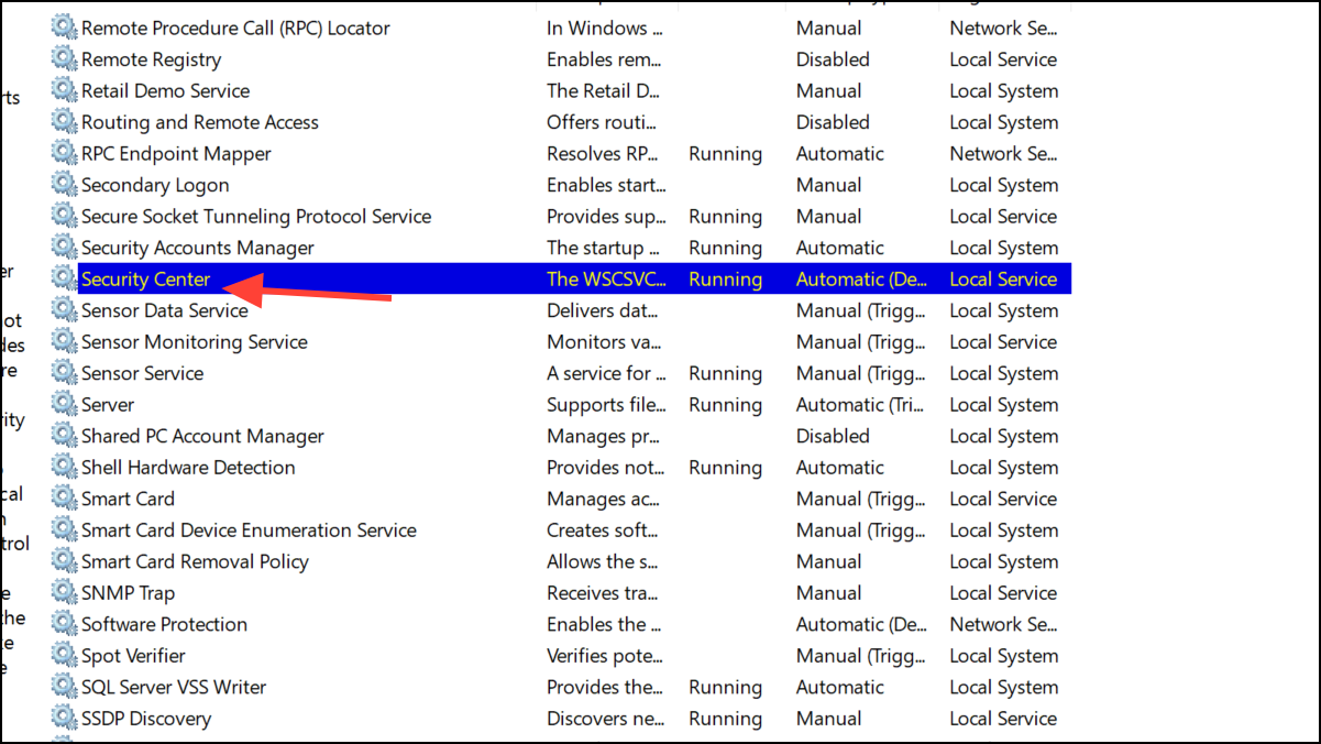 Jeśli usługa Security Center jest obecna, ale nie można jej uruchomić, przyczyną jej wyłączenia mogą być nieprawidłowe wartości rejestru. Dostosowanie tych wartości powoduje ponowną aktywację usługi.