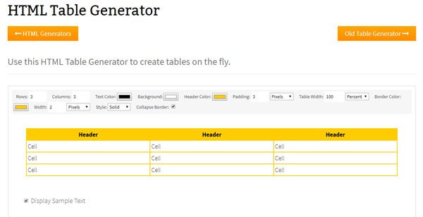 Rapid Tables to kolejne przydatne narzędzie do łatwego tworzenia tabel HTML. Podobnie jak Div Table, będziesz mieć możliwość dostosowania swojego stołu według własnych życzeń. Można na przykład zmienić kolor tła, kolor obramowania, styl obramowania, odstępy między obramowaniami i tak dalej. Za pomocą Rapid Tables można stworzyć stół o wymiarach 100×300. Dzięki temu możesz utworzyć tabelę HTML. Odwiedź ichoficjalna strona internetowa.