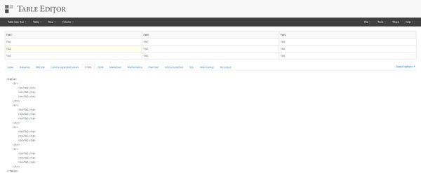 Generator tabel to prawdopodobnie pierwsze narzędzie, które powinieneś sprawdzić, ponieważ zawiera kilka przydatnych opcji, które mogą pomóc w stworzeniu lepszej tabeli dla Twojej witryny. Umożliwia utworzenie tabeli LaTeX, tabeli HTML, tabeli tekstowej, tabeli przecen, tabeli MediaWiki i tak dalej. Możesz utworzyć tabelę zawierającą dowolną liczbę kolumn i wierszy. Chociaż wstępnie ustawiona opcja pozwala tylko na stół 15×15, możesz ręcznie wprowadzić liczbę zgodnie z wymaganiami. Odwiedź ichoficjalna strona internetowa.