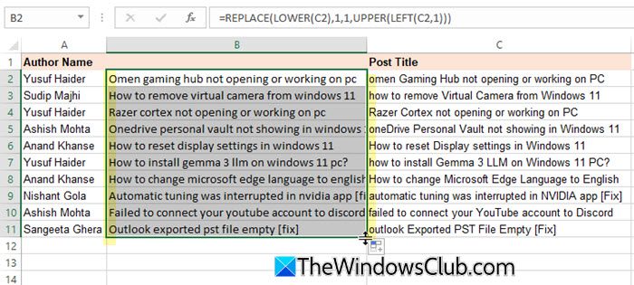 W tym poście pokażemy Ci, jak to zrobićpisz wielką literą pierwszą literę ciągu tekstowego w programie Microsoft Excel. Podczas eksportowania danych do programu Excel ciągi tekstowe często są nieprawidłowo sformatowane. Mogą pojawiać się w tytule, w zdaniu, wielkimi literami lub w kombinacji losowych przypadków. Jeśli masz do czynienia z takimi danymi i potrzebujesz dostosować wielkość liter, ten poradnik jest dla Ciebie.