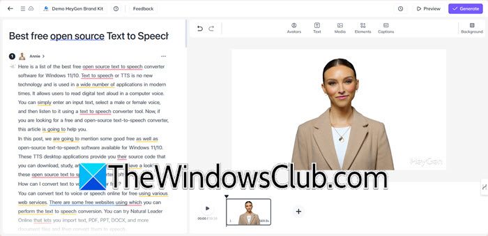 - Na koniec wybierz swój awatar, proporcje, wprowadź tekst i utwórz wideo AI.