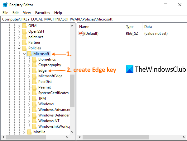 Uzyskaj dostęp doMicrosoftuKlucz rejestru. Oto jego ścieżka: