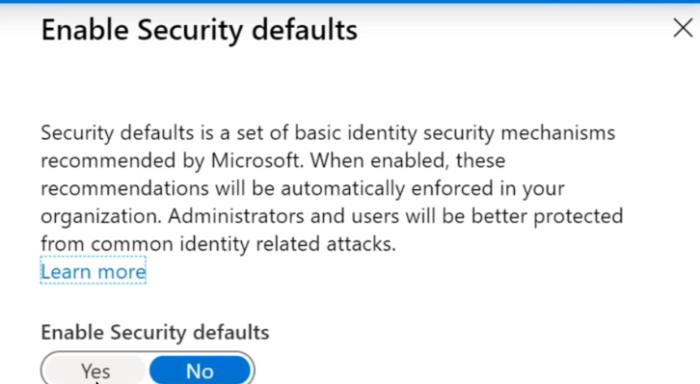 Przejdź doTożsamość > Przegląd > Właściwościi wybierzZarządzaj domyślnymi ustawieniami zabezpieczeń.