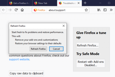 Zaleca się aktualizację Firefoksa do najnowszej wersji jako środek zapobiegawczy przed rozwiązywaniem problemów. Następnie możesz spróbować wykonać następujące czynności: