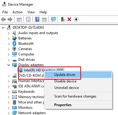 Rozwiń listęAdaptery wyświetlaczai kliknij prawym przyciskiem myszy swójKarta graficznakierowca.