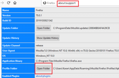 PodPodstawy aplikacji, znajdziesz nazwy opcjiFolder profilu. Odpowiadająca temu ikona miałaby nazwęOtwórz folder. Proszę kliknąć na niego, aby otworzyćFolder profilu.