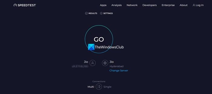 Następnie musimy sprawdzić i upewnić się, że z Twoim Internetem nie dzieje się nic złego. Jeśli Twoja przepustowość jest niska, Grok może nie być w stanie połączyć się ze swoim serwerem. Możesz użyć Aw celu określenia szerokości pasma. Jeśli Twoja przepustowość jest niska, zrestartuj router, a jeśli to nie pomoże, skontaktuj się ze swoim dostawcą usług internetowych.