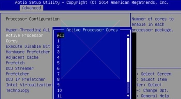 - Zmień wartość ustawień na ENABLE, aby aktywować wszystkie rdzenie.