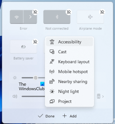 Spowoduje to dodanie przycisku Dostępność w Szybkich ustawieniach.