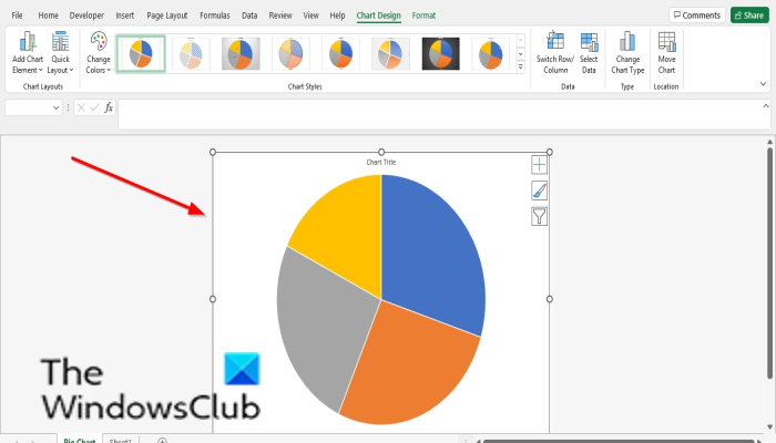 Kiedy zmieniasz rozmiar wykresu, umieść kursor na wskaźniku, który jest punktem na końcu; wskaźnik zmieni się w podwójną strzałkę. Teraz przeciągnij krawędź wykresu, aby zmienić rozmiar wykresu do żądanego rozmiaru.