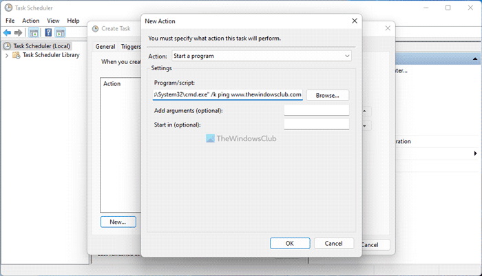 Czasami możesz chcieć uruchomić określone polecenie za każdym razem, gdy logujesz się na swoje konto. Może to być:świstpolecenie lub cokolwiek innego. Jeśli tak, możesz skorzystać z tego przewodnika, aby dowiedzieć się, jak używać Harmonogramu zadań, wbudowanego narzędzia, do uruchamiania dowolnego polecenia za pomocą wiersza poleceń podczas uruchamiania komputera z systemem Windows 11 i Windows 10.