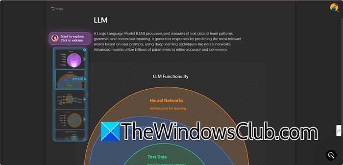 Teraz otrzymasz pole, w którym musisz wkleić tekst, który zostanie użyty do utworzenia obrazu graficznego. Pamiętaj, że w przeciwieństwie do większości platform GenAI, nie będziesz tutaj podawać instrukcji, jak utworzyć obraz. Możesz podać streszczenie swojego dokumentu lub akapit samego dokumentu. Po wklejeniu tekstu należy kliknąć przyciskWygeneruj wizualizacjęopcja.