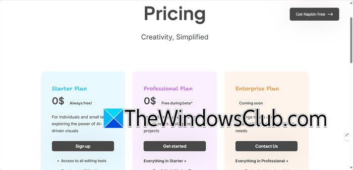 Napkin AI ma zarówno opcje bezpłatne, jak i płatne; jednak obecnie oferują zarówno usługi standardowe, jak i premium za darmo. Możesz z nich skorzystać, wchodząc na ich stronę internetową Napkin.ai i zakładając tam konto.