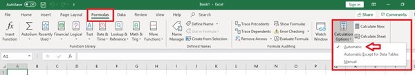 Jest to jeden z najczęstszych powodów i pierwsza kontrola, którą należy wykonać. Czasami opcja obliczeń jest skonfigurowana jako „ręczna”, co jest główną usterką powodującą, że komórki nie aktualizują formuł w programie Microsoft Excel. Możesz rozwiązać ten problem.