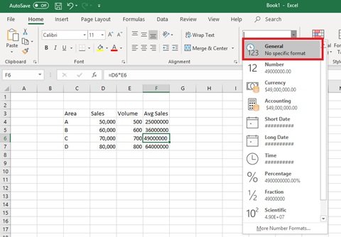 Kliknij komórkę i sprawdź grupę Numer na karcie Strona główna. Jeśli wyświetli się „Tekst”, zmień to na „Ogólny” za pomocą menu rozwijanego.