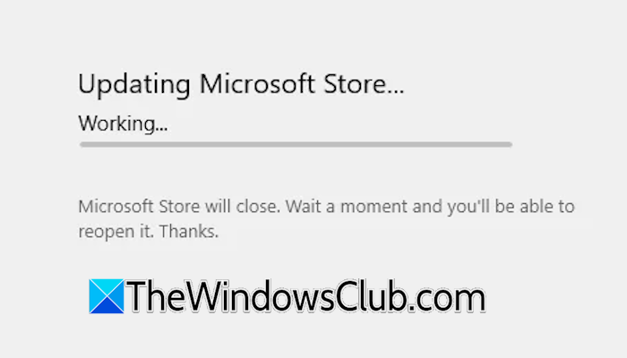 Wykonaj następujące poprawki, jeśliSklep Microsoft utknął w Aktualizowanie sklepu Microsoft… Pracuje…ekranie w systemie Windows 11/10 i nie można z niego korzystać.