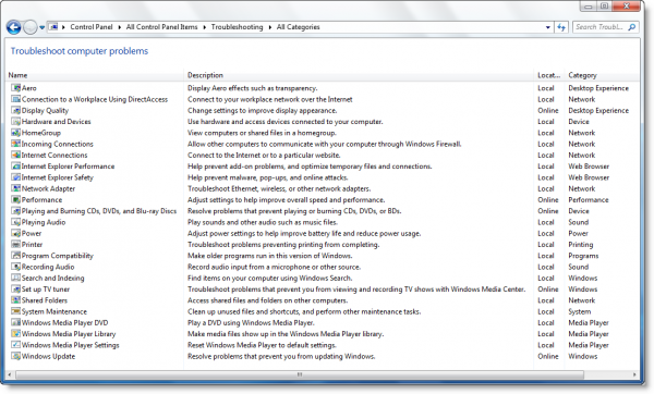 NAWindows 10, wcześniejsze wersje,możesz zobaczyć wszystkie kreatory, które pomogą Ci rozwiązać następujące problemy.